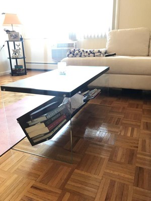This table is pretty easy to assemble. Just had some hard time aligning the screws.. Perfect for our living room! Looks like it’s floating from afar..