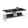 Add a modern twist to your living space with the SoHo Glass Coffee Table with Shelf by Breighton Home. The sleek tempered glass sides and spacious tabletop accommodate books, beverages, and much more. Sturdy and stylish, this accent coffee table is ideal for placement in your living room, family room, or any entertainment area. Show off your books or movie collection with this convenient bottom shelf made for storing entertainment favorites or other storage needs. Pair with additional modern pieces from the SoHo collection by Breighton Home, each sold separately.