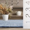 Embracing modern sophistication, this runner rug reveals a beautiful pattern of geometric motifs and textures, harmoniously woven in shades of dark blue and ivory, lending a serene and upscale look to any room. The refined color palette adds depth and dimension, making it an ideal choice for contemporary decors.