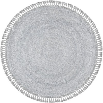 Elevate your living space with our hand tufted round area rug, meticulously crafted in India. Measuring 6 feet in diameter, this rug introduces a touch of contemporary elegance with its serene silver hue. The straightforward design, devoid of any pattern, highlights its sophisticated simplicity. A blend of 80 percent polyester and 20 percent cotton ensures a soft yet durable surface, making it ideal for any room. The rug boasts a comfortable height of three eighths inches, offering a subtle yet noticeable layer of texture to your floor. Whether placed under a coffee table or as an accent piece, this rug effortlessly complements your decor, adding charm and refinement. Transform your space into a cozy retreat with this stylish addition.