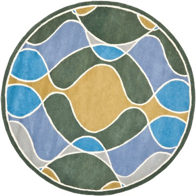Introduce an element of elegance and artistry to any room with our hand-tufted round area rug in a serene palette of blue and multi. This 6' X 6' round statement piece is a blend of luxurious wool and lustrous viscose, skillfully crafted in India to create a soft, inviting texture underfoot with a pile height of 1/2 inch.