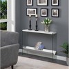Enhance your modern living space with the SoHo Glass V Console Table with Shelf by Breighton Home, a perfect blend of form and function. Featuring sleek, tempered glass side panels, this contemporary piece provides sturdy support while boasting an airy, minimalist appearance. This table offers ample storage and display space with a wide tabletop and a unique, slanted V-shaped bottom shelf which adds a touch of sophistication while creating a practical storage solution for your books and home decor. Crafted with a beautiful finish and durable manufactured wood, this console table promises elegant style and reliable use. Designed for simplicity, this table boasts easy assembly and a sleek, simple silhouette that seamlessly fits with a variety of interior styles. Versatile and adaptable, it complements living rooms, entryways, or hallways with ease. Coordinate this table with other modern pieces from the SoHo Collection, each sold separately.