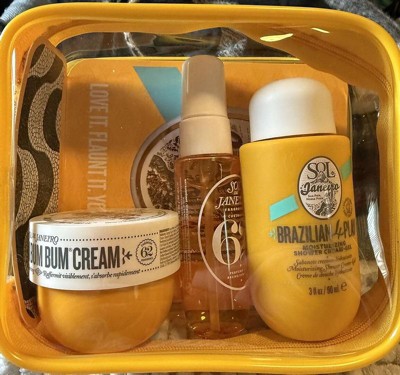 Wake up to a vacation state of mind with the Sol de Janeiro Bum Bum Jet Set! With these travel-friendly minis ready for your midday escape, you’ll be radiating Brazilian beauty no matter where you go. This body-loving set includes their iconic Brazilian Bum Bum Cream for smooth and toned skin with a hint of shimmer, their Brazilian 4 Play Shower Cream-Gel for dreamily soft skin, and their Brazilian Crush Cheirosa ‘62 Hair & Body Fragrance Mist so you can exude an irresistible scent all day long. All products are imbued with the mouthwatering aroma of pistachio and salted caramel, which will instantly transport you to a world of vacation bliss! And with caffeine-rich guarana visibly firming and tightening your skin and cupuacu butter providing hydration, not only will you look beautiful, but also feel wonderfully refreshed from your at-home escape. Let Sol de Janeiro's Bum Bum Jet Set take you away today – just lather up with the body wash, smooth on the cream, spritz on the mist – then off you go!