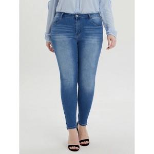 Sol Living All-Season Comfortable Dark Blue Women's Straight Stretch Skinny Jeans Casual Oversize Full Length Denim Pencil Pants for Mom