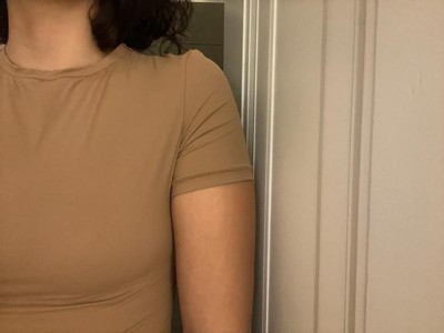 [This review was collected as part of a promotion.] Giving four stars because I haven’t washed the shirt yet so I do not know the durability of the shirt. So soft and comfortable. Dare I say an affordable dupe for skims?!??