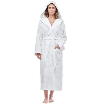 - Classic V-neck robe styling stays clean and functional for home or guest-room use with a wrap silhouette that reads as a traditional house coat. Front panels align when tied and the hem shape avoids snags on stairs, giving a tidy profile.