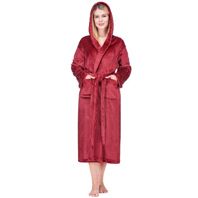 Sol Living Women’s Thick Flannel Spa Bathrobe, Hooded V-Neck Wrap Robe with Tie Belt & Pockets