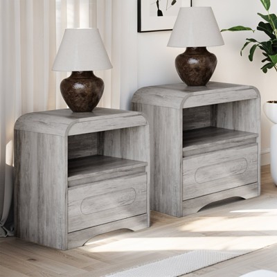SOLACE FURNITURE Nightstand Set of 2, Nightstand with Drawer Storage and Open Compartment, Modern Night Stand for Bedroom Gray