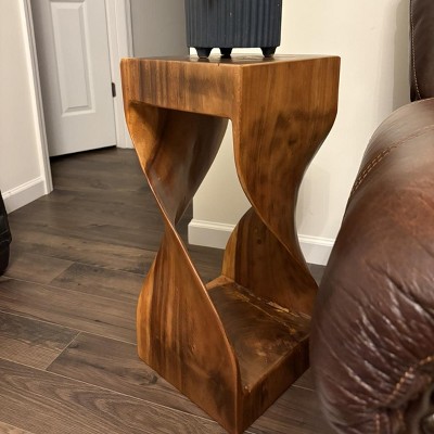 Solana brings a bit of whimsy to the accent table category with this side table carved from solid Acacia wood. The table appears to have been twisted out of the ground and placed directly into your home with its beautiful carved details and natural wood finish. Use as an end table, visually alluring display, or plant stand.