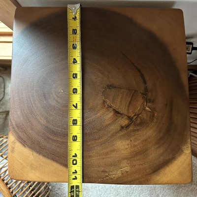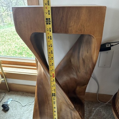 I love this acacia wood pedestal. Each one is unique. Heavy and solid. I wish I had a space to put another one! It was durably packed to withstand any abuse.