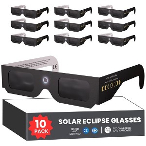 - Perfect Fit for All - Each pack includes 10 non-polarized solar eclipse viewing glasses designed for universal fit. With 2 crease lines they comfortably accommodate a range of face shapes and sizes for adults, teens, and children. Wear them over prescription glasses without any hassle.