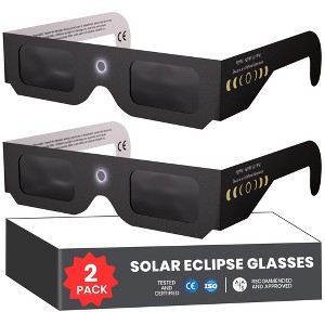 - Perfect Fit for All - Each pack includes 2 non-polarized solar eclipse viewing glasses designed for universal fit. With 2 crease lines they comfortably accommodate a range of face shapes and sizes for adults, teens, and children. Wear them over prescription glasses without any hassle.