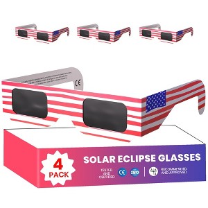 - Perfect Fit for All - Each pack includes 4 non-polarized solar eclipse viewing glasses designed for universal fit. With 2 crease lines they comfortably accommodate a range of face shapes and sizes for adults, teens, and children. Wear them over prescription glasses without any hassle.