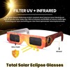 Exploring the safety measures for observing solar phenomena and planetary transits? Solar eclipses stand as awe-inspiring moments in the celestial calendar, considered once-in-a-lifetime experiences. But did you know that staring directly at the sun without eclipse glasses during these events can be risky for your eyes? Direct viewing of the sun during eclipse events poses significant risks to eye health, potentially causing long-term damage to your eyes. To fully enjoy these solar eclipse events without risking harm to your eyes and compromising vision, consider our solar eclipse glasses with premium light-blocking film lenses. Enjoy an unforgettable eclipse-viewing experience by wearing our Solar Eclipse Glasses, these solar eclipse cardboard glasses are meticulously engineered to filter out harmful infrared, ultraviolet, and 99.99% of visible light, these solar viewers glasses create a clear orange-hued image of the sun without any harm to your eyes. Our Solar eclipse glasses meet the stringent requirements of CE, ISO, scale 12-16 of EN 169/1992, and the American Astronomical Society (AAS) safety protocols. Plus they're designed with your comfort in mind, featuring creases on both sides for a snug fit on faces of all shapes and sizes, you may also wear our solar eclipse glass over your prescription glasses. Each solar eclipse pack contains sturdy cardboard frame ensures durability for prolonged use of the solar eclipse glasses. Don't miss out on the upcoming solar eclipse on April 8, 2024 –Secure your solar eclipse glasses today and embark on an unparalleled journey through the wonders of the universe!