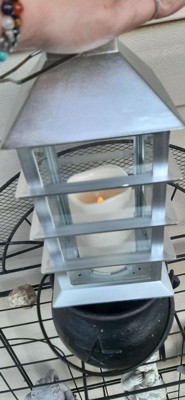 [This review was collected as part of a promotion.] This rustic themed lantern looks perfect in my farmhouse-style home. The silver finish gives it a real life look. The handle on top also gives it a cute and practical feel. You can hang it anywhere since it is very light weight, or you can place it on top of something. Either way, it gives off a charming vibe. I also love how it is durable and made for both indoor and outdoor. This makes it versatile and allows you to move it around based on your needs. The candle gives off a realistic flickering light. The brightness of the solar light is perfect for both indoor or outdoor use. I would recommend this solar powered lantern to others. It looks amazing, works great and is versatile.