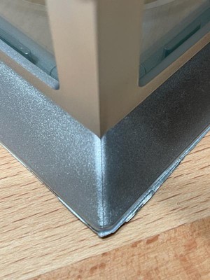 [This review was collected as part of a promotion.] I was excited to receive this lantern in exchange for my honest review, but I’m really disappointed with it. I followed the directions exactly, leaving it in the sun for a full day and then turning it on at night. The result? Nothing happened for about 10 seconds, then the LED candle lit up for one second and then turned off. That was it. Thinking I had maybe missed a step, I let it sit in the sun for another full day. Again, nothing happened when I turned it on, then the candle lit up a few seconds later and then went out. Thinking it was a problem with the AA NiMH rechargeable battery in the bottom of the lantern, I swapped it out for a brand new non-rechargeable AA. Same result again: one second of candlelight and then nothing. It just doesn’t work. The fixture is made almost entirely of plastic. At a distance it looks fine, but there are imperfections that are clearly visible up close. For one thing, the solar panel on the top is crooked; it was either glued on quickly without any regard to fit or maybe the lantern itself has extra plastic on one side. The bottom of the lamp also has imperfections, shown in the pictures. The good news? The glass is actual glass, not plastic. I’m really disappointed with this. It retails for about 17 dollars, but it’s probably worth 17 cents.