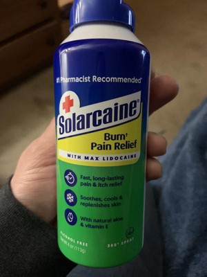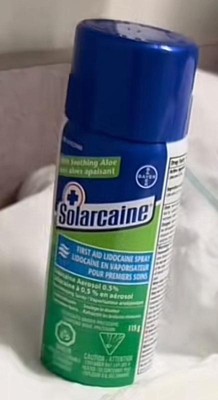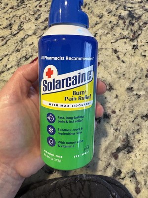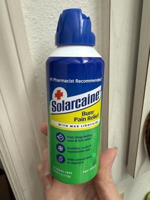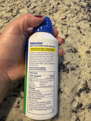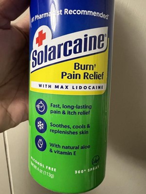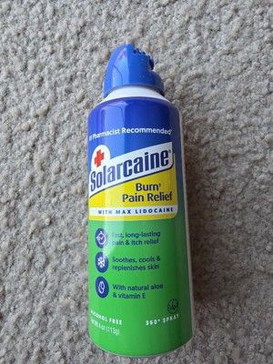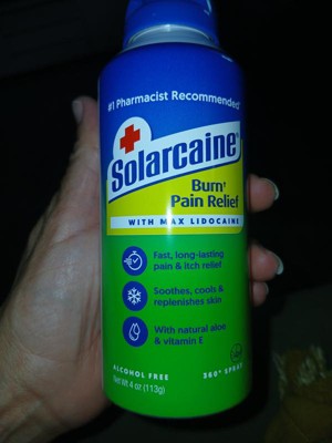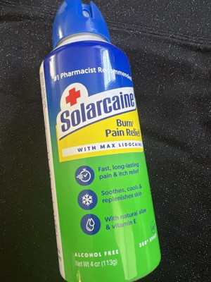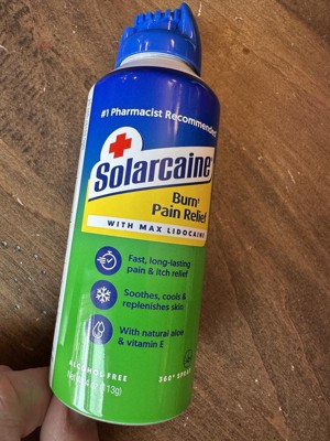Solarcaine is a long-lasting, burn pain relief that soothes, cools and replenishes the skin. It contains Lidocaine HCL to deliver fast, cooling pain relief for sunburns, minor burns, cuts, scrapes and insect bites. Simply spray the affected area, do not use more than 3-4 times per day. I like that there is no sticky residue.