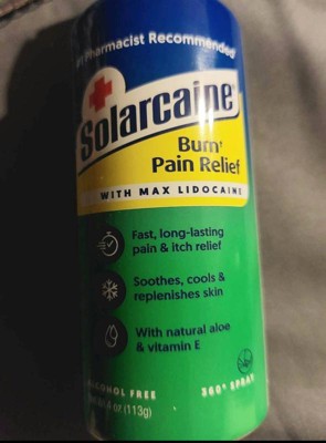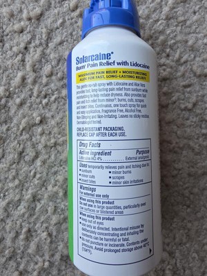 - IMMEDIATE BURN RELIEF: Soothe your burns in a flash with Solarcaine. Our medicated burn relief aloe spray is specially formulated with Lidocaine HCL to deliver fast, cooling pain relief for sunburns, minor burns, cuts scrapes and insect bites. An after sun care essential