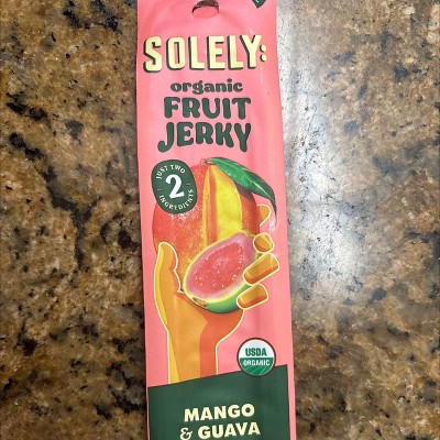 Solely® Organic Mango & Guava Fruit jerky is made with only 2 Ingredients: Organic mango and guava. Yes, really. We believe in transparency, and we use whole and simple ingredients listed on the front of our package. Never added sugar, preservatives or from concentrate.