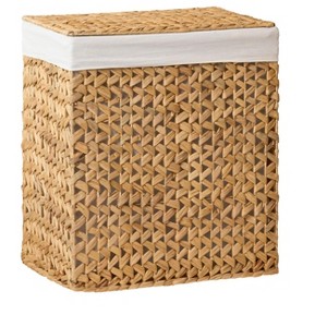 - Sustainable Material: Crafted from sustainably sourced water hyacinth, reducing environmental impact. Removable Liner for Easy Cleaning: Conveniently remove the liner for separate washing, keeping your hamper fresh.