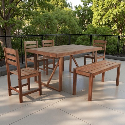 This set will be a lovely addition to your outdoor patio because it has a gorgeous Reddish Brown Wood Finish.With this Reddish Brown Hard Wood Patio Dining Set, make room for upcoming dinner parties, leisurely summer cocktails, and the maximization of fresh breezes!