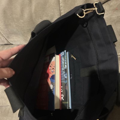 This bag is not black. It’s navy blue with black straps. I normally like this color combo, but in person it looks cheap and confusing. The colors they chose are so similar, it looks like a mistake instead of two complementary colors.
