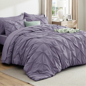 Solid Diamond Pintuck 7pcs California Queen Grayish Purple Bedding Set Comforter Set - Bedsure - 1 of 4