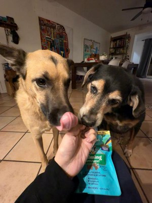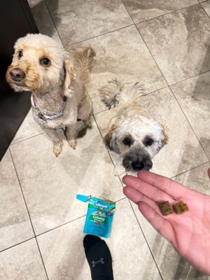 [This review was collected as part of a promotion.] I have two doggos that have loved these treats! One will eat absolutely anything and the other is skeptical that I might be poisoning her. But fear not, no poison here! These are yummy treats that do a good job at helping to keep my dogs calm from NYE fireworks and normal thunderstorms. I love that the size is small enough for big and small dogs to enjoy without worrying about giving them too many!
