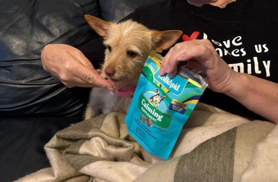 [This review was collected as part of a promotion.] I adopted this tiny dog from Purrto Rico and she arrived 2 weeks ago. She can from a bad hoarding situation and is scared of everything. We had a lot of family over and the place was loud and crazy. I gave her a calming treat and within a couple of minutes she had stopped shaking. I am sold on these for helping this sweet girl and she loved the taste.