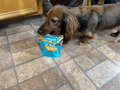 [This review was collected as part of a promotion.] My dog love the treat. They are perfect size. Some smaller ones that may have broken up, but that’s expected. I don’t think the effectiveness of the product really works. I haven’t seen any difference in my dog. He loves the flavor. Never turns it down. The ingredients appear to be healthy. It has a medium texture, not too hard or too soft. It does tend to crumble if left out. I’m not too sure how it absorbs into my dogs body.