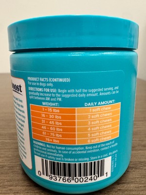 With L-Theanine, L-Trytophan & Melatonin Relaxation Composure Calmness Powered by Bioboost™ Support For Dogs 60 Soft Chews* Not long ago, our pets' lives were a little wilder. Dogs ate protein and raw, rich minerals from their prey. Their lives may look different today, but their instincts haven't changed. That's why we created bioboost™, a proprietary ingredient that includes plasma, that supports digestive health and immunity, helping pets get the most out of every day to keep them thriving. *Product filled by weight.