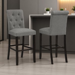 Solid Wood Tufted Bar Stools with Curved High Back, Set of 2