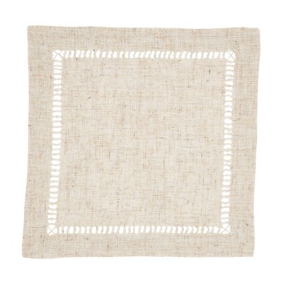 Solino Home Linen Classic Hemstitch Dinner Napkins Beige Set of 4, 20 x 20 Inches