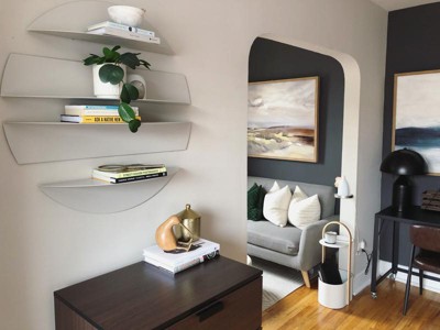 I absolutely LOVE the Solis wall shelves! I gravitated towards the neutral stone finish, it works really well in my space. The material used is very durable and allows for plenty of storage space. Installing was very simple, template and hardware included. Get creative and customize how you want to display your solis shelves! Well done umbra :)