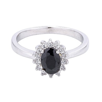 • Black Gothic Style Engagement Ring – Features a bold 3 carat oval cut cubic zirconia set in sterling silver with a sleek black plated finish.