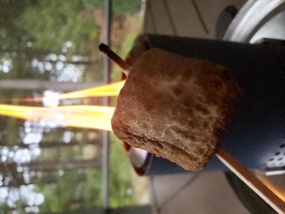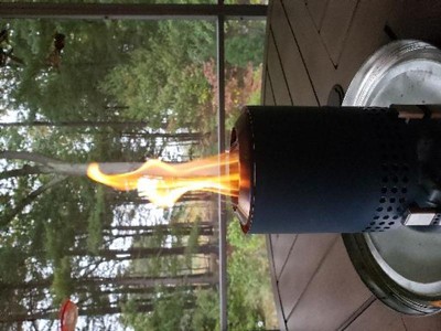 Love this little fire pit for the table top. So easy to light with pellets or small chunk wood. Made smore's and it was so easy and so cool...Not sure why my pics are sideways?
