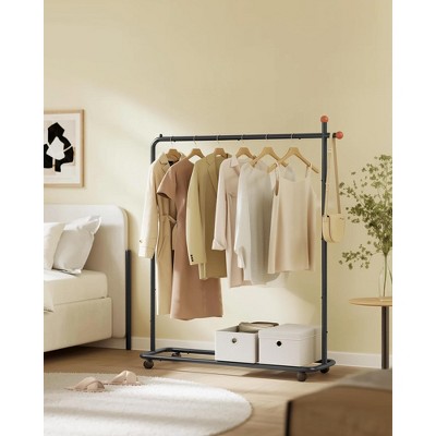 SONGMICS 110 lb Load Capacity Clothes Rack with Wheels Garment Rack with Storage Shelf Clothing Rack for Bedroom 2 Brakes Steel Frame White