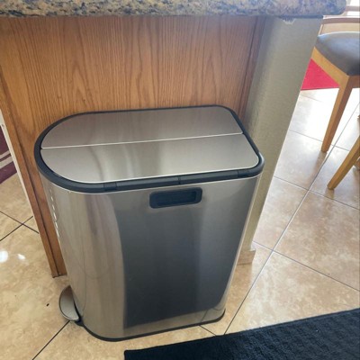 I had searched far and wide for a dual compartment that was slim enough not to stick out into the walkway of my kitchen? and also could open under the partial overhang of the counter. Well, this was the only one because of the winged lids. I also didn’t want an electric one because I hate changing batteries. I found this exact model on 3 other retailers sites. Target had a sale, then the additional 5% off with my Circle debit card, and the fact that Target has a 90-day return policy, sealed the deal (because I’ve seen reviews that some started messing up around 3 months). It’s perfect! Finally, I don’t have to have 2 separate trash bins. And I saved $20 with the sale and discount!