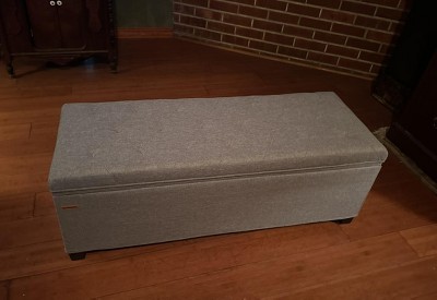 This ottoman/trunk is perfect for what I needed and wanted in my bedroom. Our home is small and has very little storage options and few closets. I wanted something inexpensive but that still looked nice, and could be repurposed later on in another room if needed. It is sturdy and the perfect height against the foot of our king sized bed. For reference our bed is only 21” high. It assembled quickly. The only thing I didn’t like was the brand label but that was solved by turning it around.