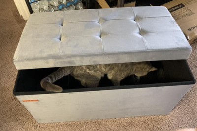 SONGMICS Storage Ottoman Bench is constructed of Medium Density Fiberboard offers great sturdiness and stableness, and supports max 660lbs. Velvet fabric and meticulous stitching and thickened 25D sponge padding contribute more comfy for sitting or footrest. It offers a large volume as a storage ottoman bench that helps keep the room organized beautifully. Quick setup, easily fold it flat for compact storage. Perfect for the end of your bed to sit on for dressing yet with ample storage for bedding and off-season clothing. Whether you use this ottoman with storage in your living room, entryway, bedroom, small apartment, walk-in closet, playroom, or den, it will allow you to hide away all that mess.