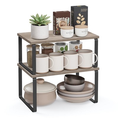 - [Adjustable] With their unique design, with one slightly smaller than the other, these shelf organizers can be stacked on top of one another, nested, used separately, or even in an L-shape. Adjust them how you want to perfectly fit your kitchen space