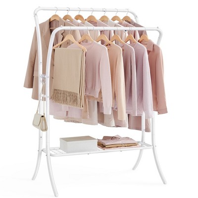 SONGMICS Clothes Rack Clothing Rack with Shelves Double Rod Clothes Rack with 6 Hooks Clothes Storage and Display for Living Room Bedroom White