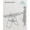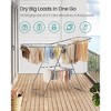 This versatile clothes drying rack offers an all-in-one solution for drying everything from delicates to large loads, featuring 24 hanging rods and 27 secure clips. The innovative gullwing design adjusts to three heights (39.4", 44.1", 49.2") to accommodate different garment lengths perfectly. When not in use, it folds down to just 2.8"D for compact storage in tight spaces. Constructed with rust-resistant steel tubes and durable plastic connectors, this heavy-duty rack supports up to 55 lbs while remaining lightweight enough to move easily. The tool-free assembly with numbered parts means you'll have it ready for use in minutes - ideal for both indoor and outdoor drying needs. Material: Steel, Plastic Product Size: 21.7"D x 58.3"W x 39.4"/44.1"/49.2"H (55 x 148 x 100/112/125 cm) Folded Size: 2.8"D x 23.8"W x 42.1"H (7 x 60 x 107 cm) Product Weight: 6 lb (2.7 kg) Max. Static Load Capacity: 55 lb (25 kg)