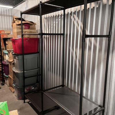 Waste of money.. company did not send me the correct pieces box sat in the rain. I called Target customer service after spending days trying to put this together and then having to get help to put it together realizing that I don't have all the pieces because the instructions are junk. Target said I had to return it to the store I purchased online because it was cheaper purchasing it online. I stated I don't have the box because when you delivered it it was left in the rain. How would I return it to the store but with all the poles? I would love to see the person's face when I'm handing them a bunch of poles as I was trying to pull it apart as I was jaming it together because I was so aggravated trying to put this crap together. The poles all I had on the shelf was leggings and they bent. Hey if you got cats my cats loved it. They sat on the shelves because I didn't put anything on those shelves. The top shows as I showed in the picture. Just leggings and the sides bent. Don't waste your money. Thanks. All I did was throw $57 in the garbage I have more pictures that I sent to Target but I can't find them now because I wasn't going to send a review. But now that I'm really throwing you in the trash because it is really junk that's why I'm filling this out because they really kind of blew me off