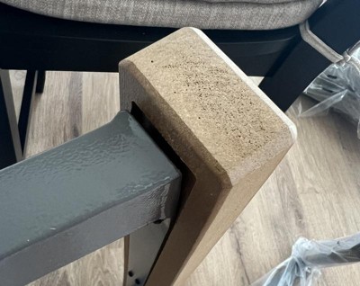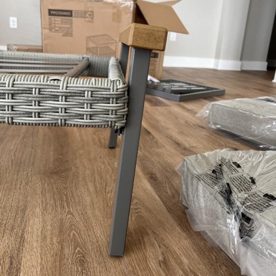 This is sadly one of the worst patio sets I’ve ever put together. It was missing two table legs right out of the box, so we couldn’t even put that together. You can see in the second picture that the leg is crooked and bends in (even when fully screwed in) on the ottoman. On pretty much every piece, the metal was warped so it was almost impossible to get screws in…you had to push SO hard from both sides to get the holes to line up. Some don’t even go in fully still (I.e. the screws that hold the back rest piece) which makes it feel flimsy. All of the legs rock. They are roomy and decently comfortable and look pretty from afar, so it’s very disappointing that they’re so defective. Also pretty bummed with Target because I called twice, and because it’s from a third-party seller, they couldn’t get me replacement parts. They said I had to buy a whole new set to get a functioning table?! We have already put it together and aren’t able to return to store, so I guess there’s nothing they can do for two missing legs on a table? Bad customer service from a company I’ve truly loved and bought so much from over the years. :(