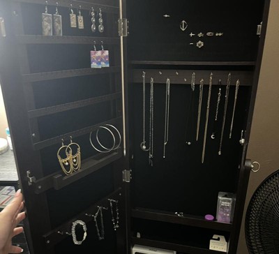 Our earring holder features both stud holes and slots, keeping your various earrings organized and easily accessible. The groove design on this mirror jewelry cabinet makes it easy to open the door. Jewelry Armoire with Full-Length Mirror Standing Large Storage Cabinet Organizer Lockable Dark Brown. Jewelry Armoire with Full-Length Mirror Standing Large Storage Cabinet Organizer Lockable Dark Brown.