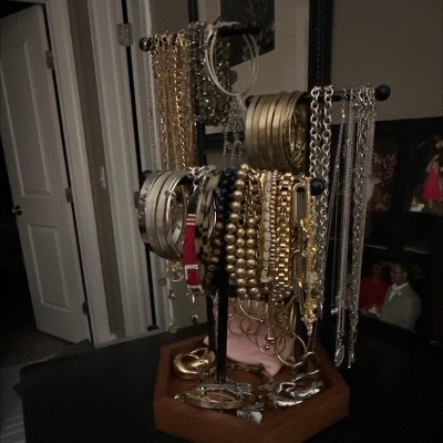 - [Easy-Peasy Assembly] Your jewelry display stand is just 2 steps away: simply take out the base, screw the 3 metal T-bars to the base, and then it's ready to help you put your favorite jewelry collection on display