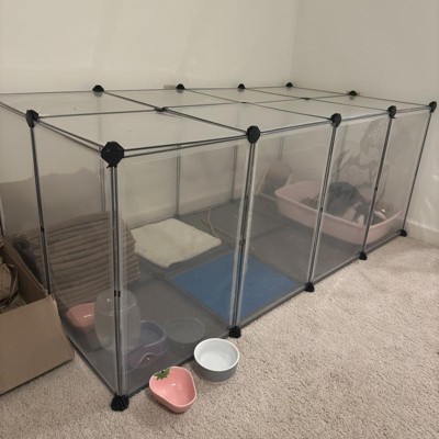 SONGMICS Pet Playpen with Floor, Small Animal Pen, Pet Fence Indoor, DIY Plastic Enclosure, 57.1 x 28.3 x 22.4 Inches, Clear