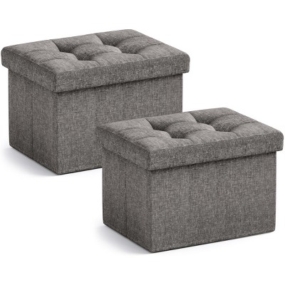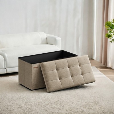 SONGMICS Small Storage Ottoman, Folding Ottoman Cube, 15 x 15 x 15.7 Inches, Footstool, Footrest, 9.8 Gal. 37 L, Velvet Surface, Cappuccino Beige