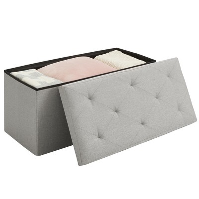 - [The Epitome of Style and Comfort]: The words "stylish" and "comfortable" will come to your mind upon seeing this storage ottoman. The full, button-adorned padded lid and breathable neutral-colored linen-look fabric invite you to sit on top